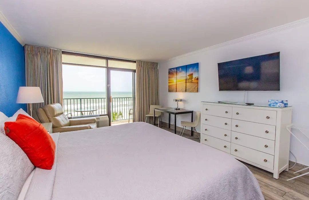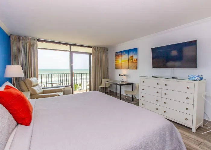 The 1-bedroom Modern Oceanfront King Studio-Sand Dunes 2432 Myrtle Beach villa is located about a 10-minute ride from the The Track and provides a Jacuzzi and an indoor pool. The Myrtle Beach holiday home features opportunities for horse riding, bowling, and mini golf in the area, 4.1 km from the Apache Pier.